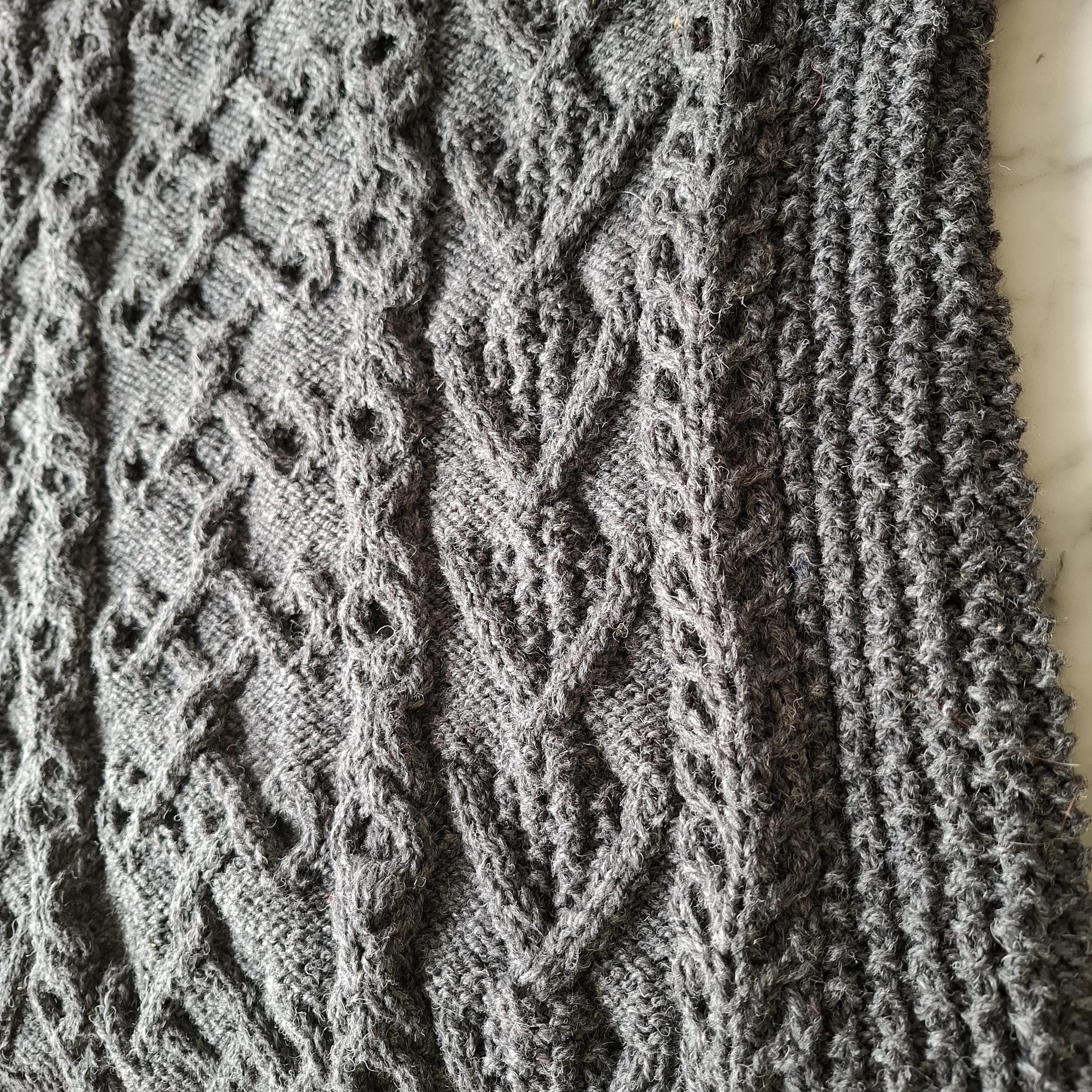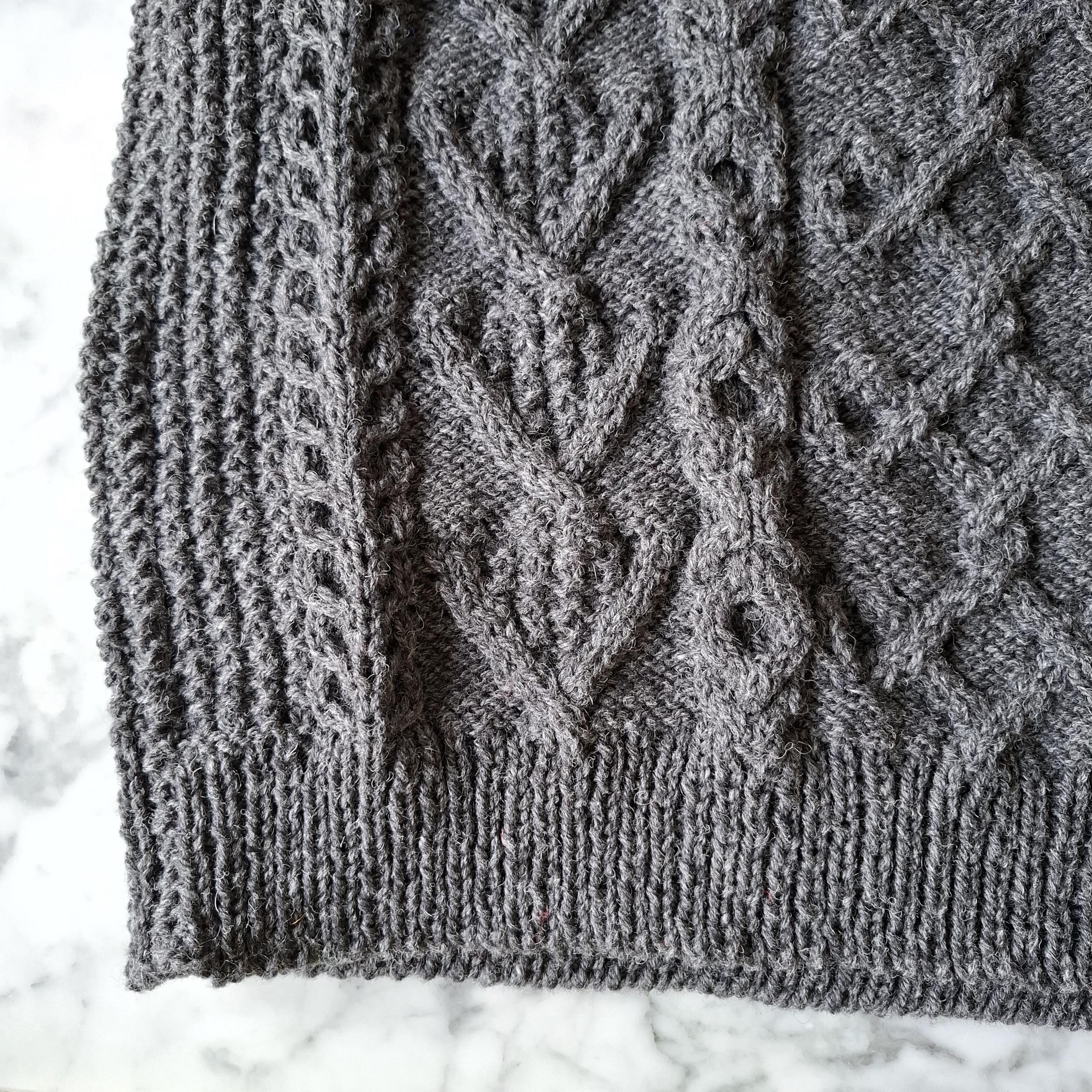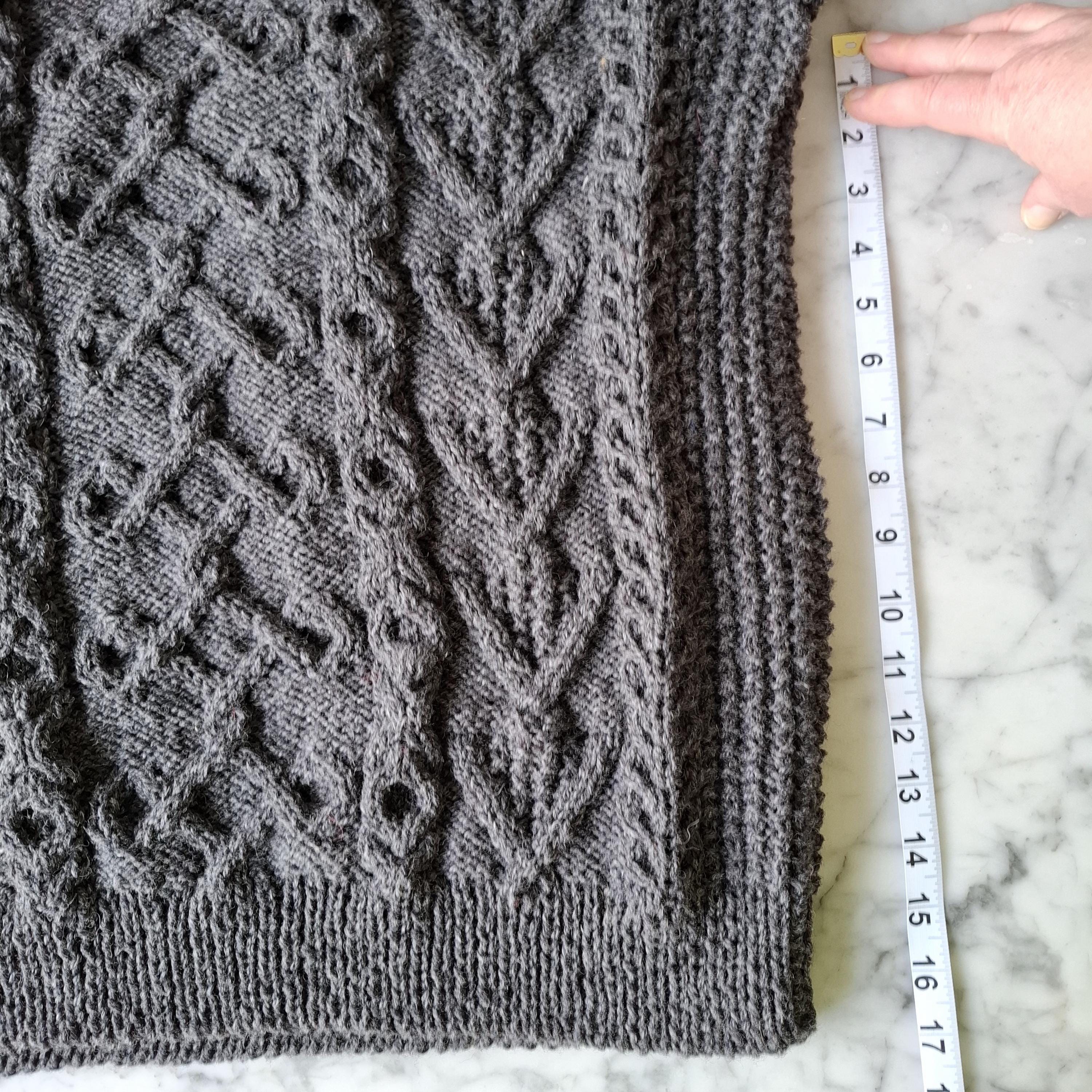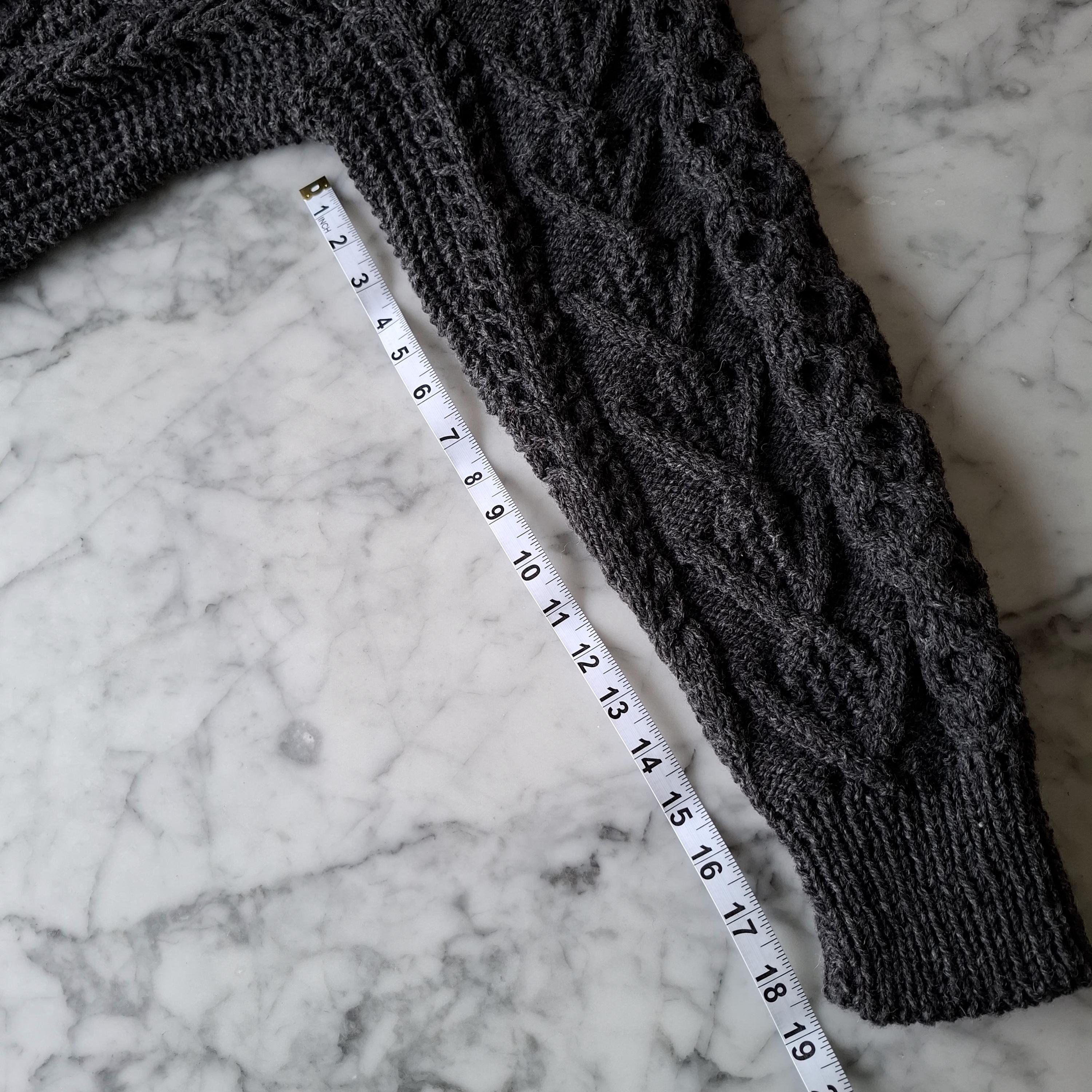 This sweater has a unique design, as each jumper she creates is a one of a kind item. It is knit in Studio Donegal Irish Heather pure wool, which is wonderfully warm and hardwearing. It is a classic style of Aran, timeless and enduring. The colour is a charcoal grey, which is a great neutral colour, bound to co-ordinate with many items already in your wardrobe. *Please note:* It has been difficult to get the colour correct in the photos, since our daylight is very low at this time of year. It is not a light grey colour, but quite a dark grey which is closer to black than white. Here is a link to the shade card of the yarn, which gives you another attempt to capture the colour other than my own: https://donegalyarns.com/irish-heather/ (The shade number is 8009).