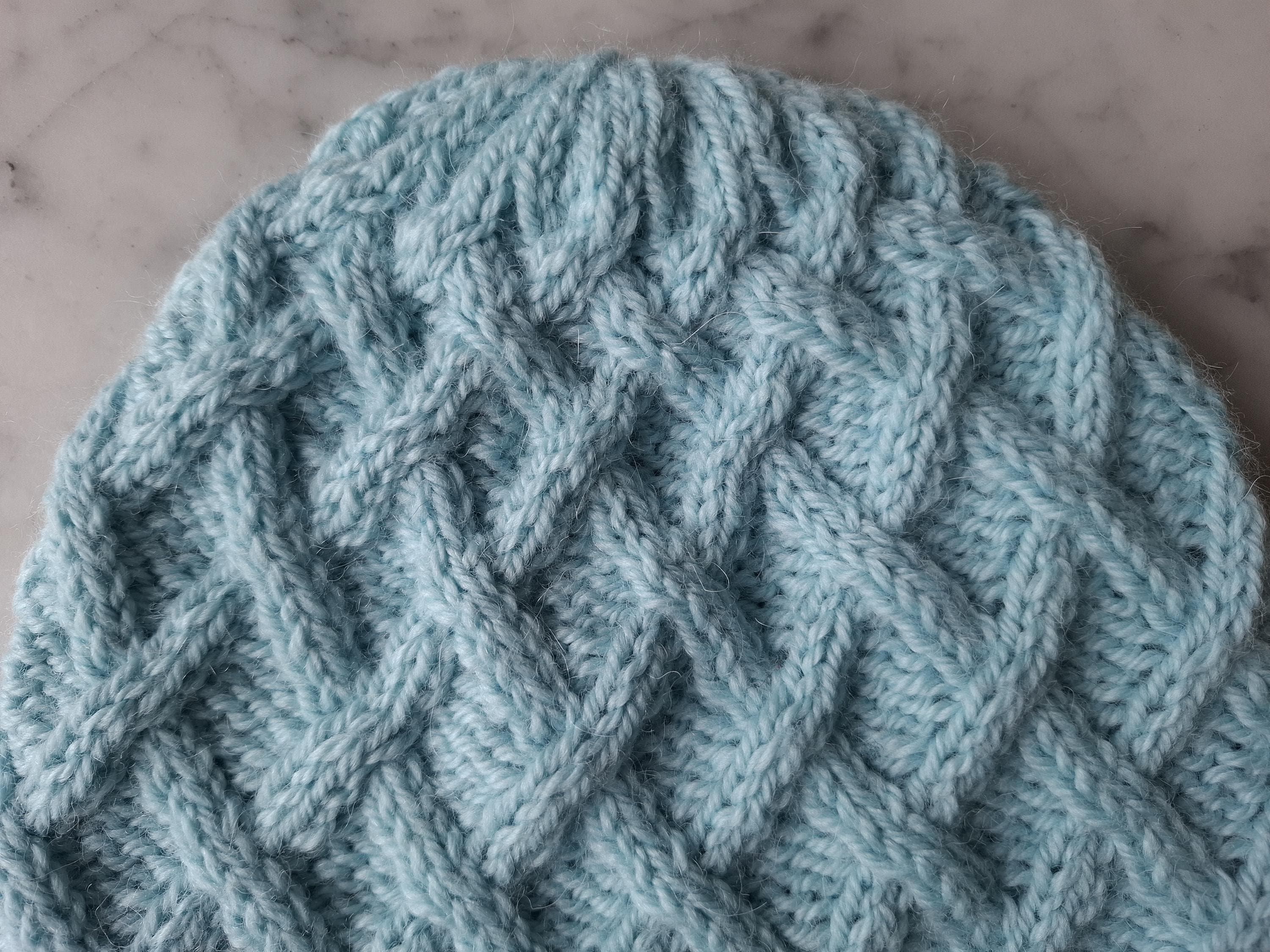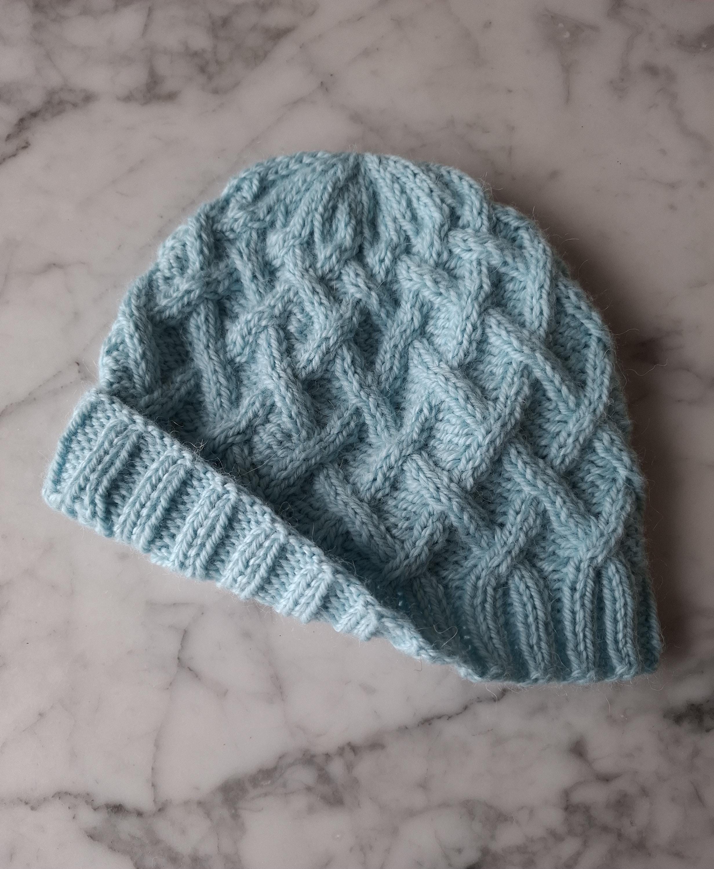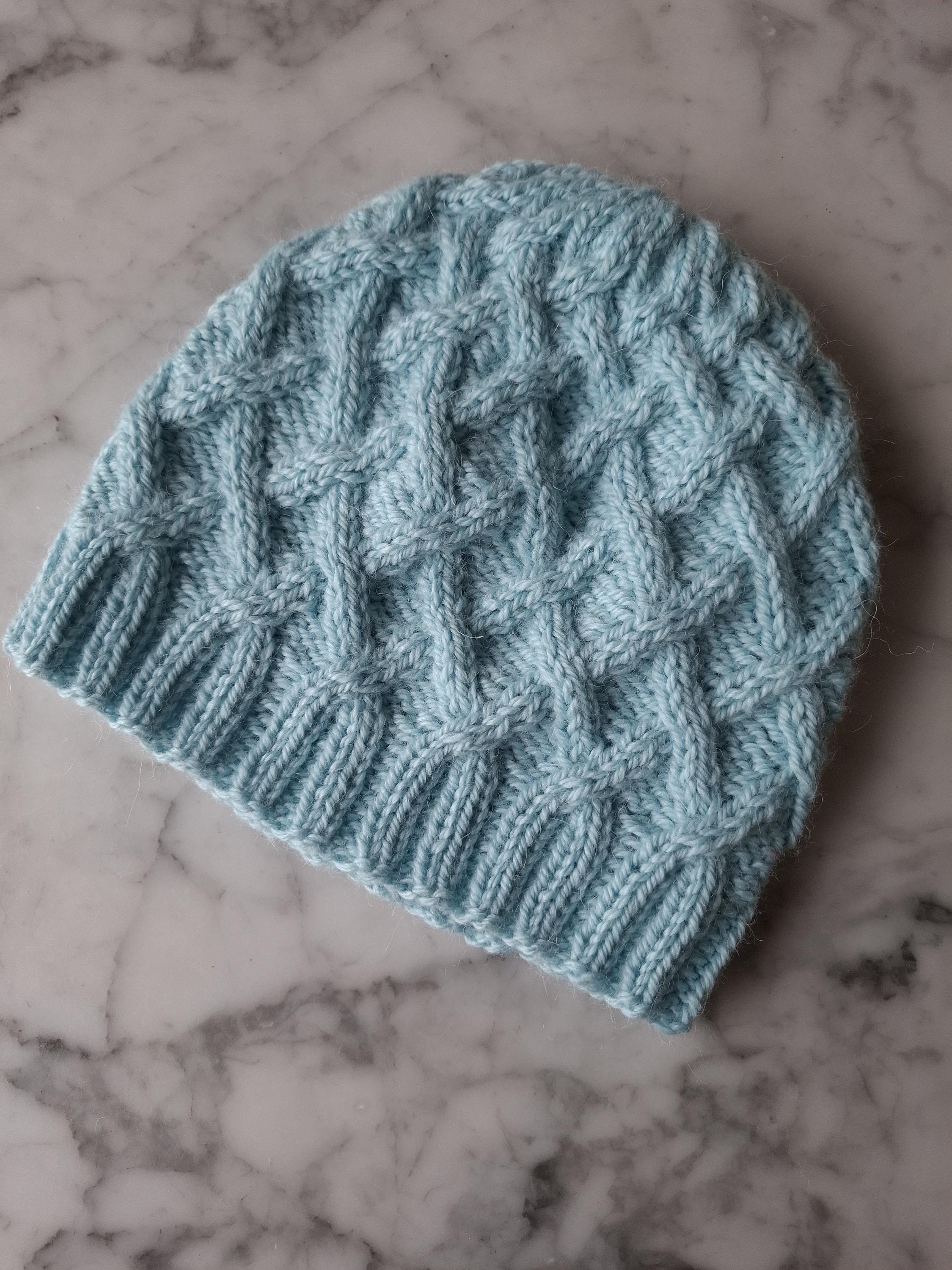 Cable knit beanie: handknit hat in wool/alpaca blend. I knitted this warm and cosy hat from my own pattern (the Mervue Beanie: pattern is here: https://aranaccessories.etsy.com/listing/655531025 ). I used one of my favourite yarns, the beautiful soft and cosy Drops Nepal (65% wool/35% alpaca) which is hardwearing yet extremely comfortable.
