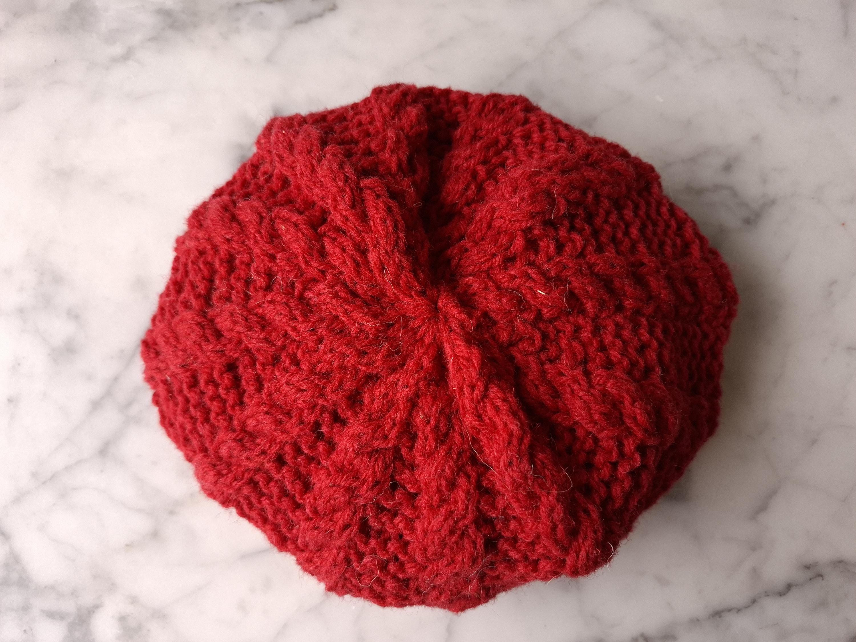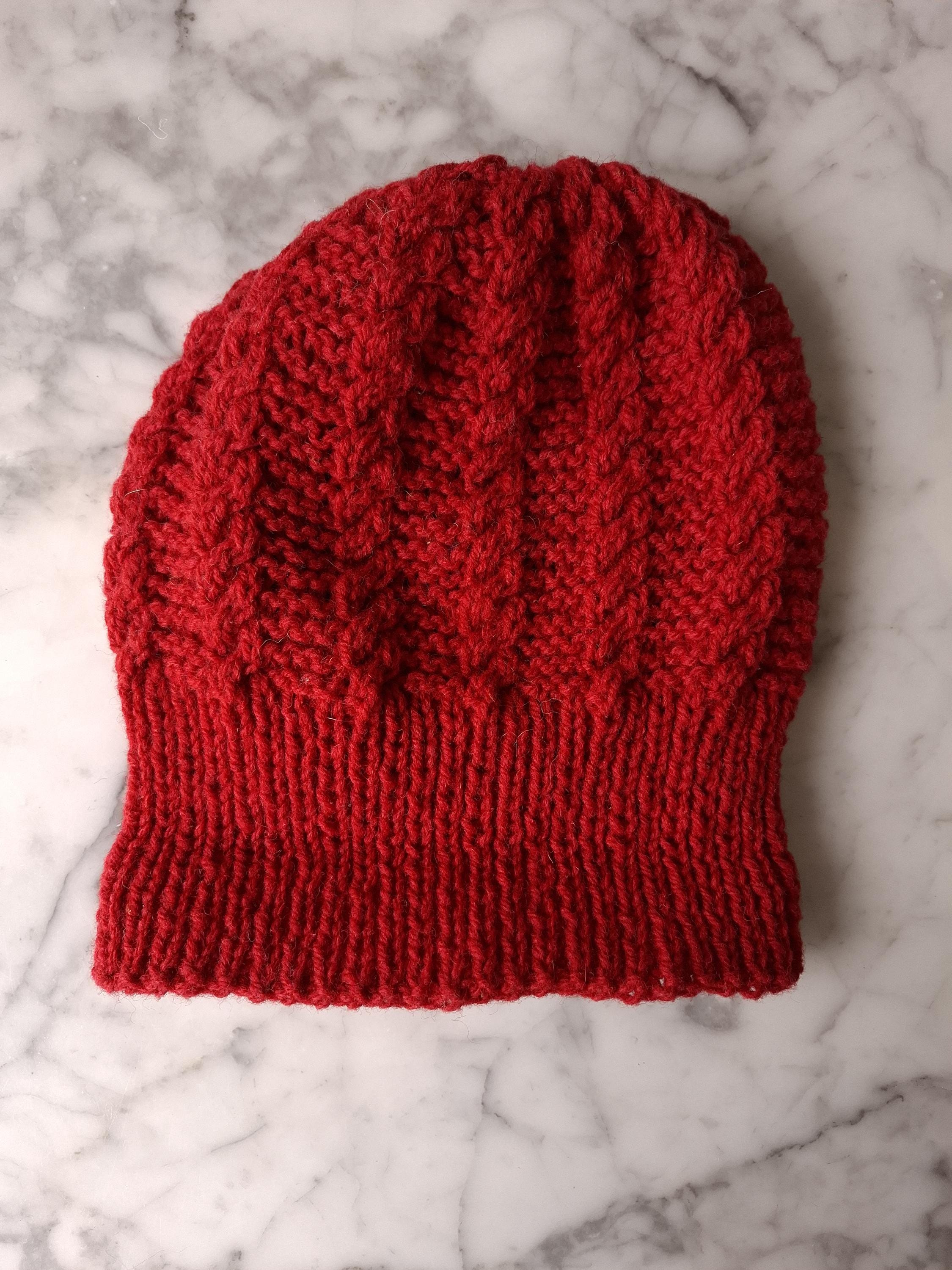 Each beanie measures around 20 inches (50 cm) in circumference (flat, unworn) and 10 inches (26 cm) from brim to crown. They are nice and stretchy, and would comfortably fit a head circumference of up to 26" (66cm), an Adult Large size. I only have one of each available, and each one is truly unique - as my mother hates knitting the same thing twice!