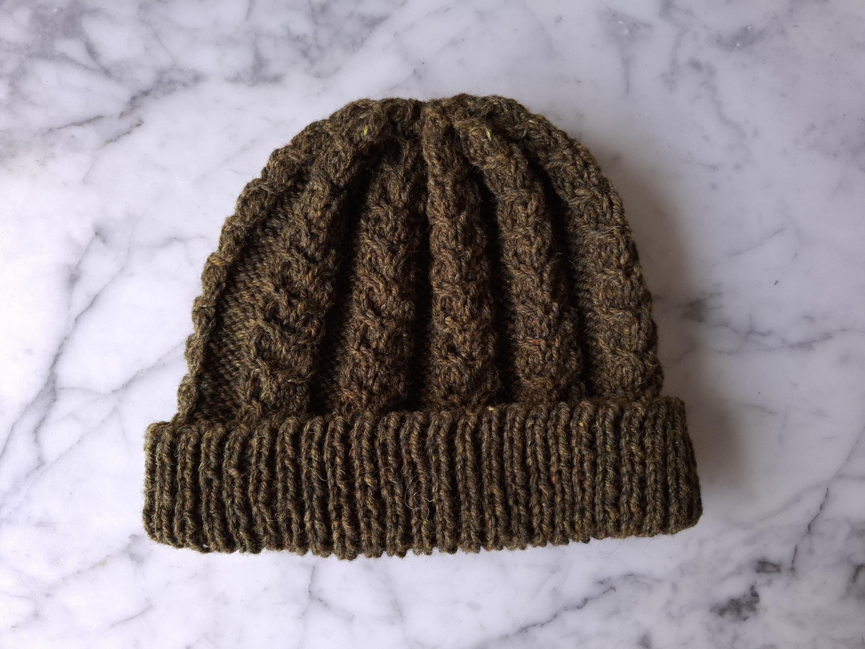 Cable knit beanie: handknit wool hats from the Aran Islands. These classic cabled hats are so warm and cosy, with a generous brim for extra comfort. As a knitter from the Aran Islands, I love sharing my designs - but this time the designs are my mother's! She knits sweaters for a craft shop on the Aran Islands, but has used her smaller quantities of wool to make these hats, which I am happy to list on her behalf. I have also listed some Aran sweaters that she has made; please feel free to browse my other listings.