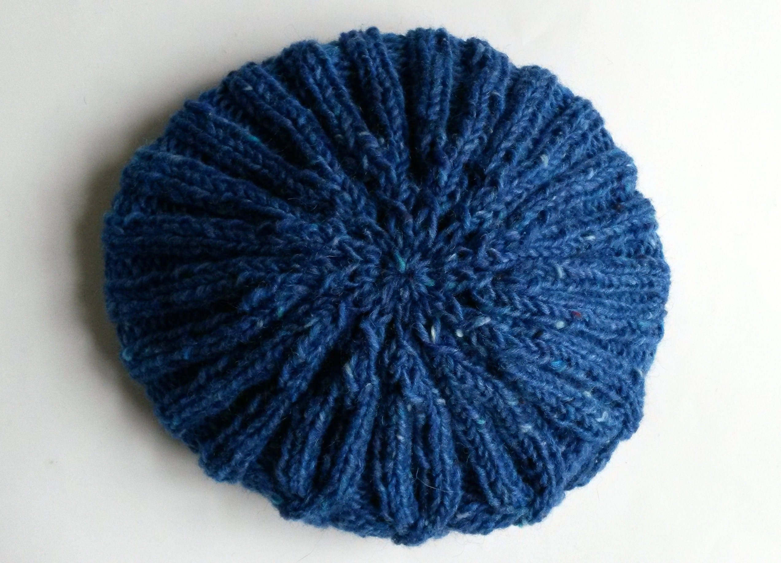 The hat is seamless, having been knit in the round, and is super soft and comfortable to wear! It has a lot of stretch since it is ribbed throughout. The beanie measures around 19 inches (48 cm) in circumference (flat, unworn) and 9 inches (23 cm) from brim to crown.