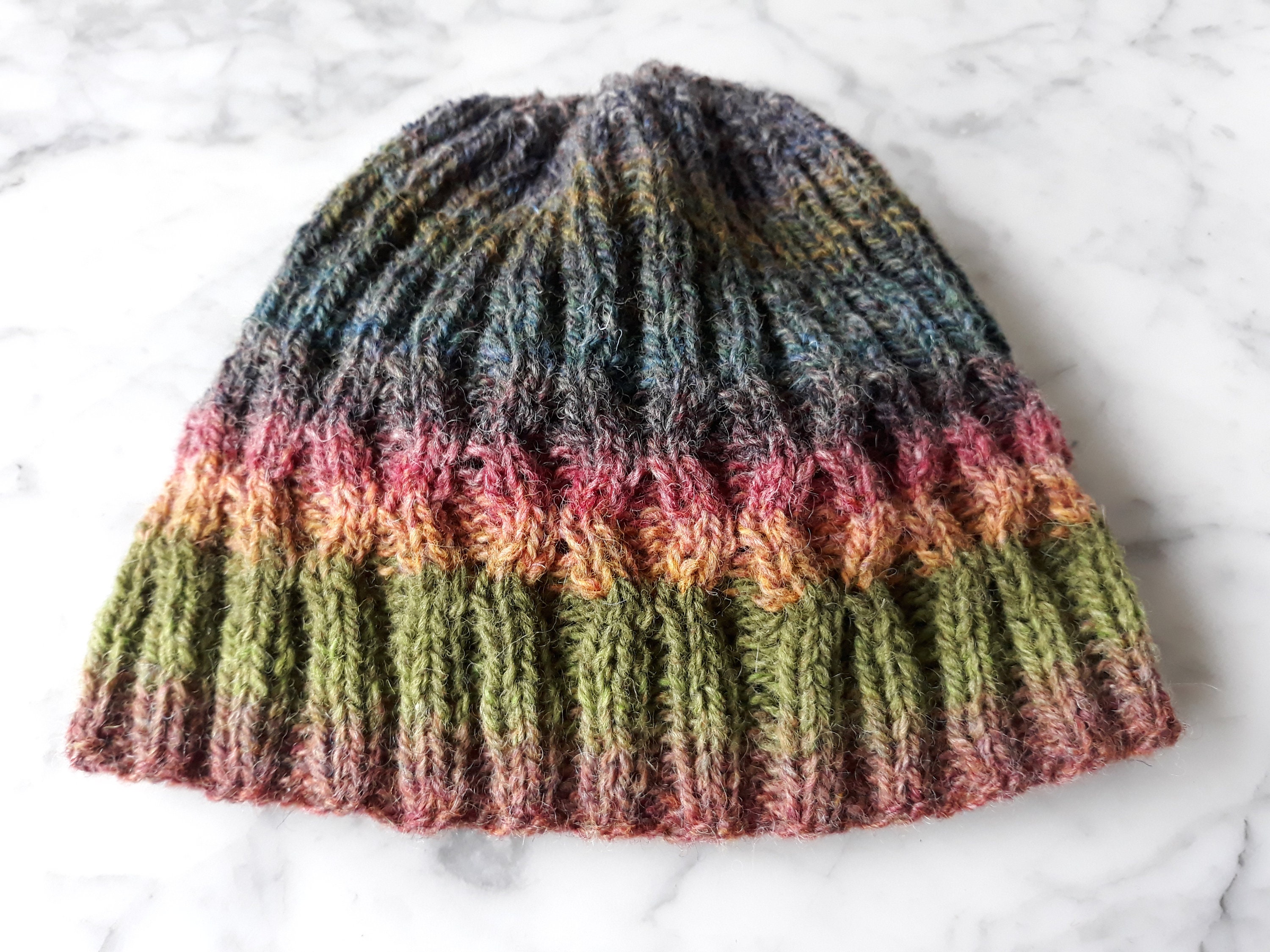 Irish wool beanie: Aran beanie hat. This is a very special hat - guaranteed unique, as the wool used is spun in very small batches at one of Ireland's oldest woollen mills in County Donegal. This wool is a wonderful mix of old-school durability and warmth, and modern colourways to bring the traditional bang up to date.
