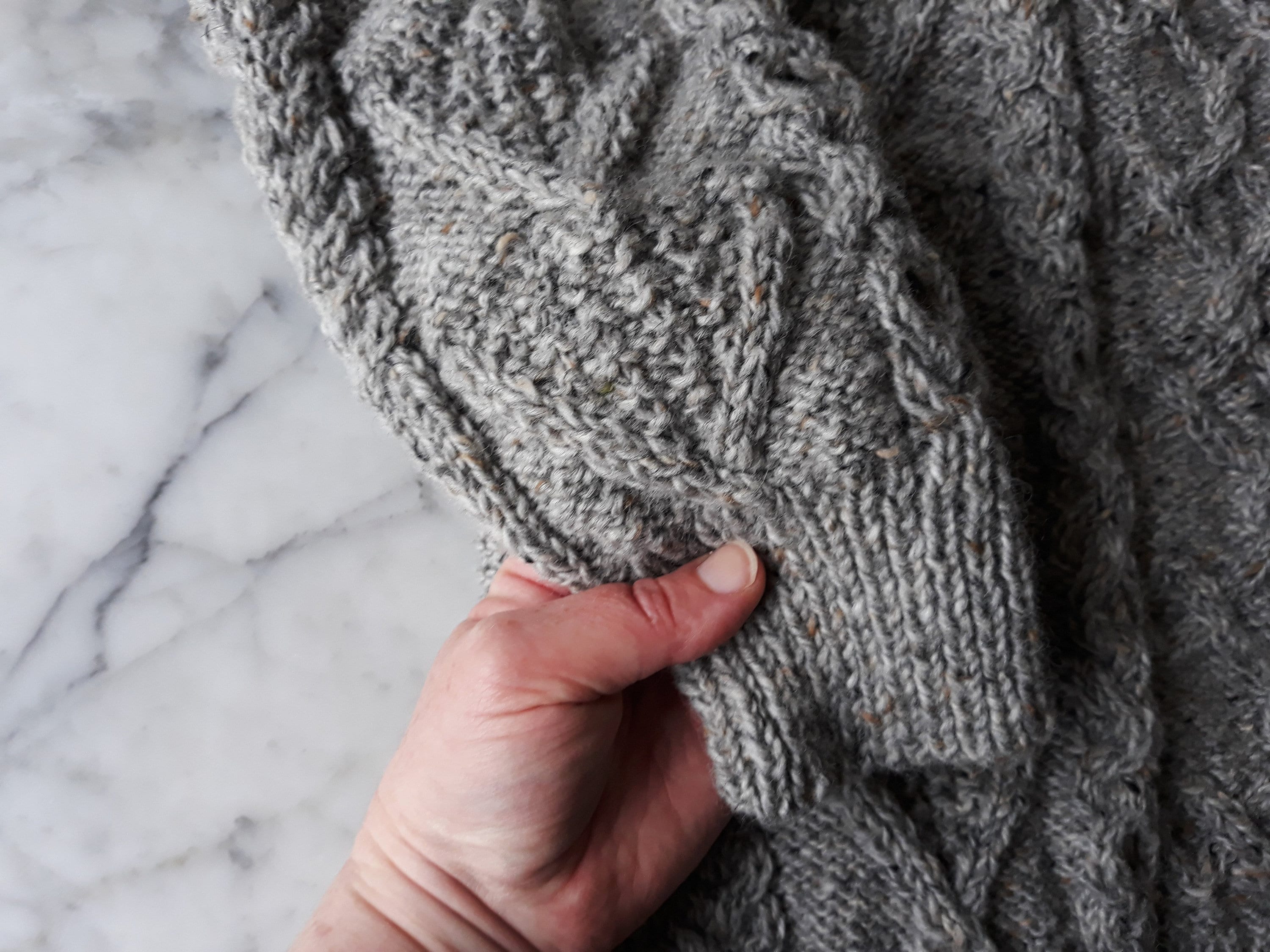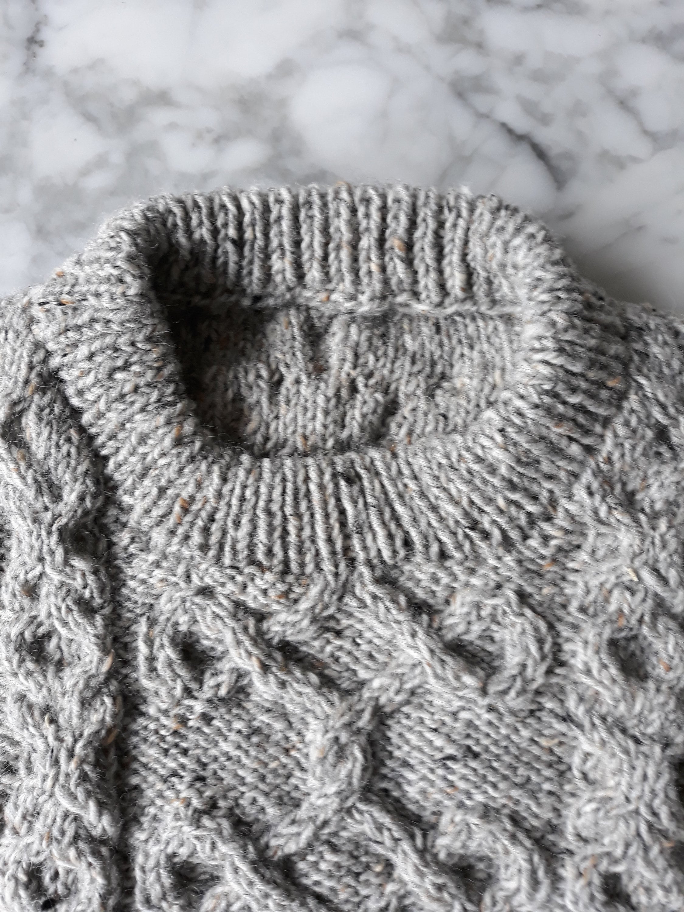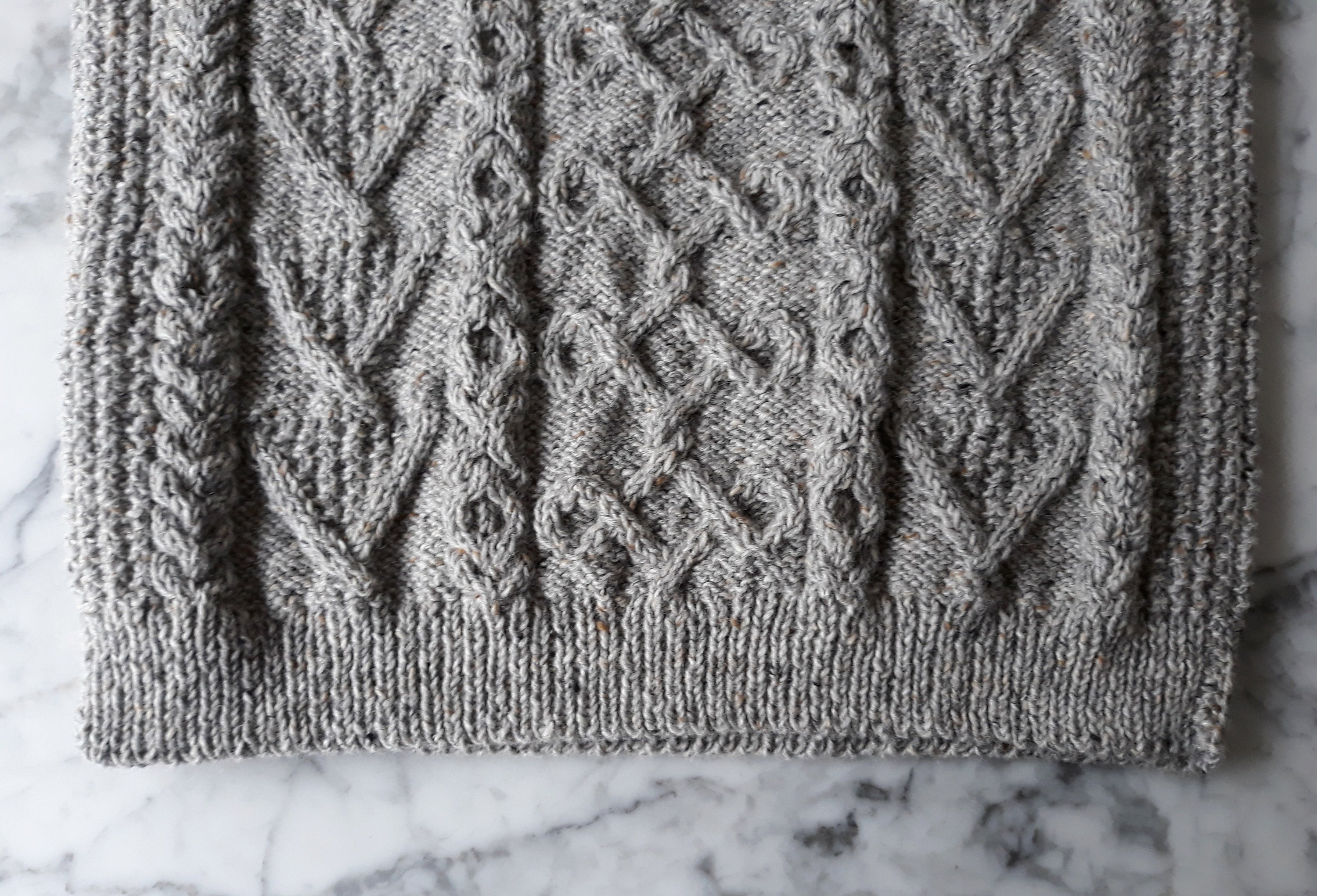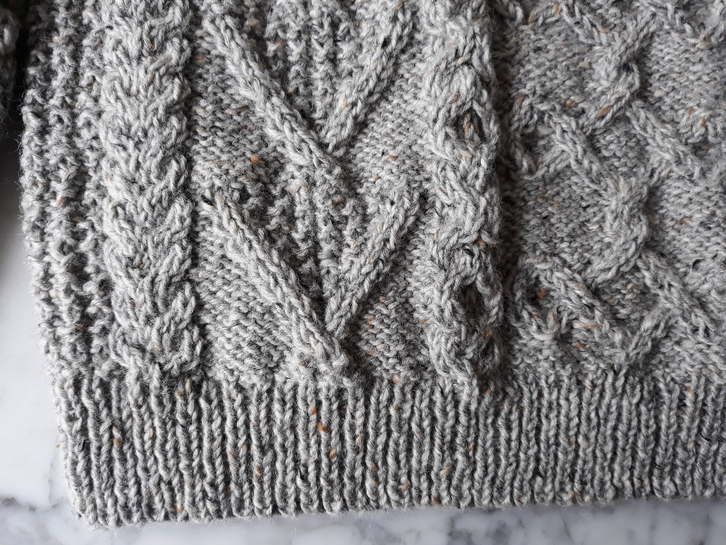 This sweater has a unique design, as each jumper she creates is a one of a kind item. It is knit in Studio Donegal Aran Tweed pure wool, which is wonderfully warm and hardwearing. It is a classic style of Aran, timeless and enduring. The grey colour is a classic neutral, working equally well with casual and smart casual clothes.