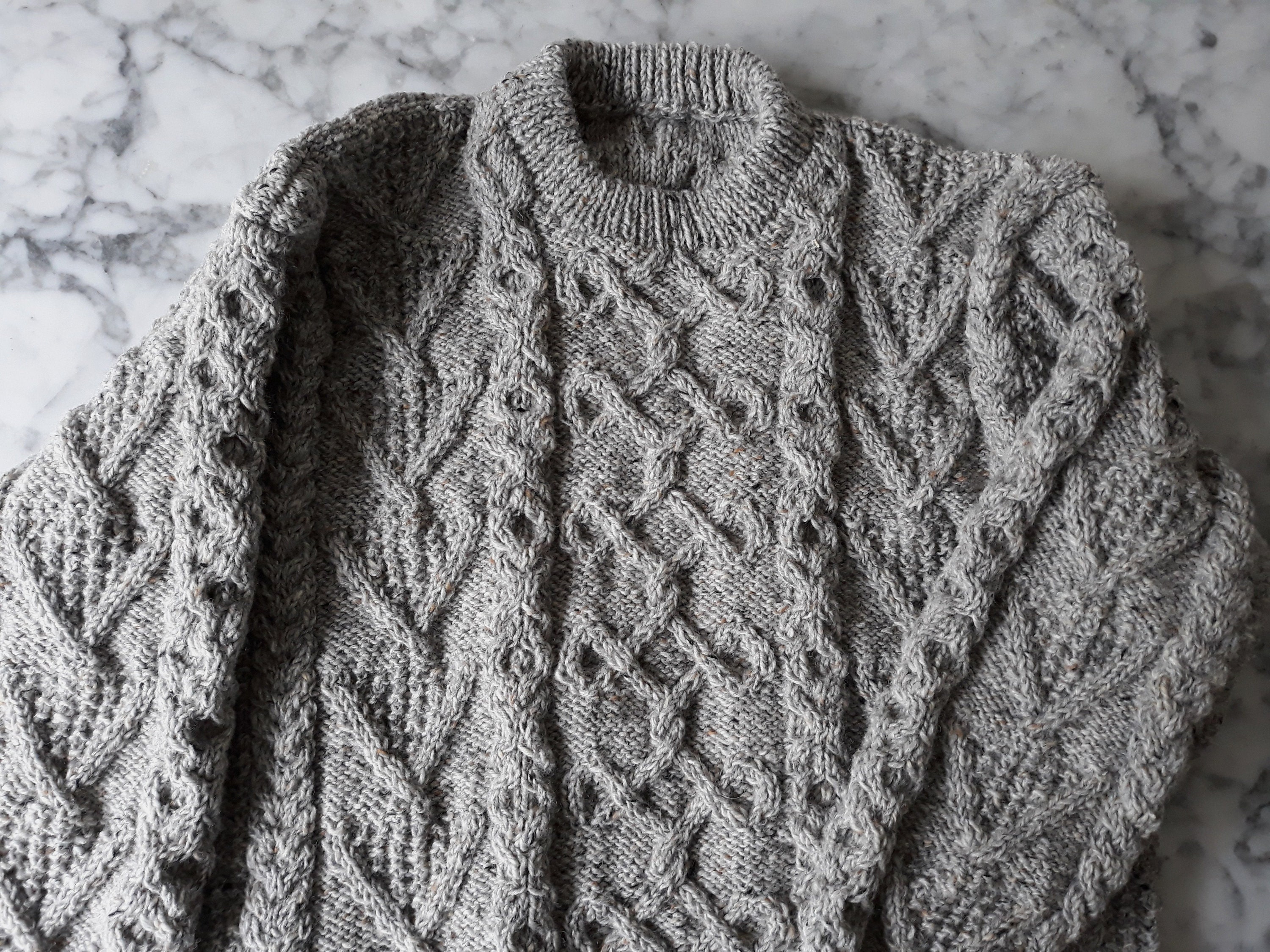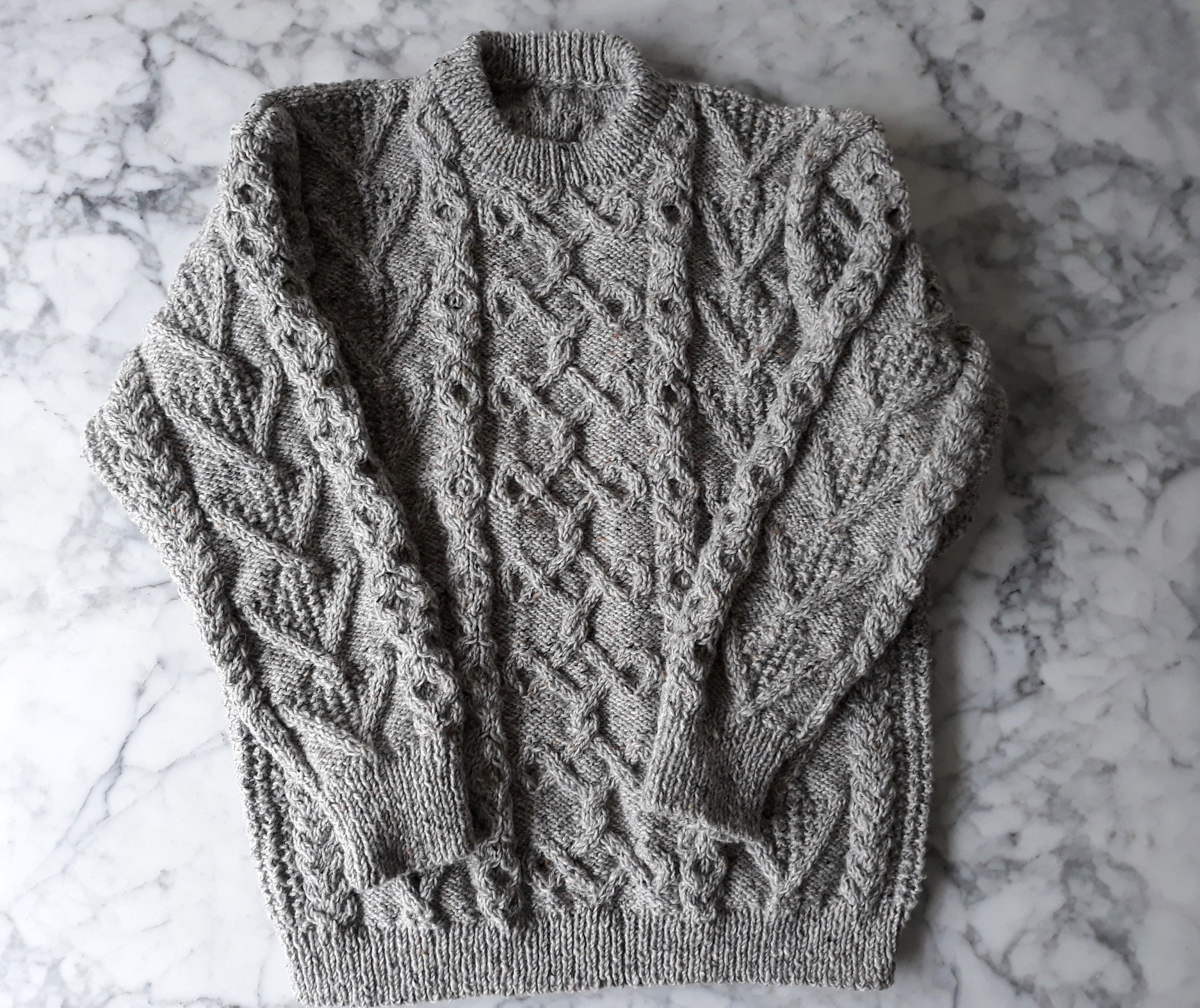 Handknit Aran Sweater: this beautiful handmade Aran jumper has been created by my mother, who still lives on the smallest of the Aran Islands, Inis Oírr. She has been knitting jumpers for decades! One of her jumpers was worn by Sharon Stone on the front page of the Irish Times. Usually my mother's jumpers are sold by a craft shop on the Aran Islands, but the shop is currently closed because of the pandemic. But! That means that her jumpers are available online for the first time ever (and this is the first ever of her jumpers to be listed!)